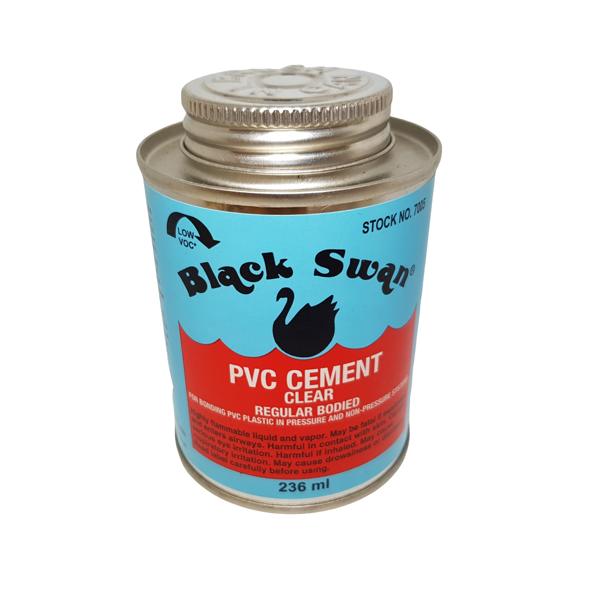 Black Swan PVC Cement – Regular is a regular bodied, fast set, high strength PVC solvent cement used to join PVC pipe and fittings.