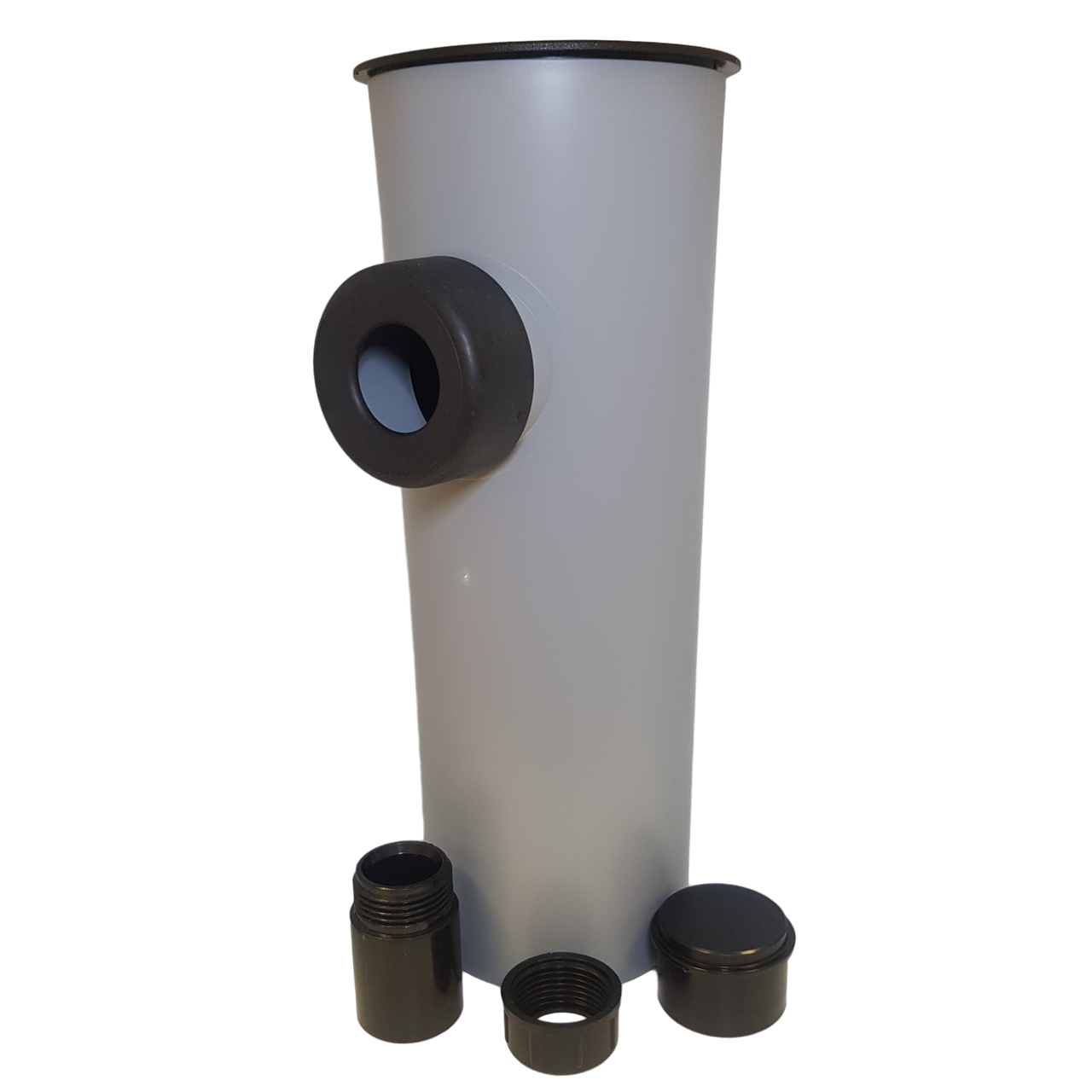 Soakaway container for use with limestone chippings, 110mm x 300mm x 1¼”/1½” Pipe top and side inlet connections.